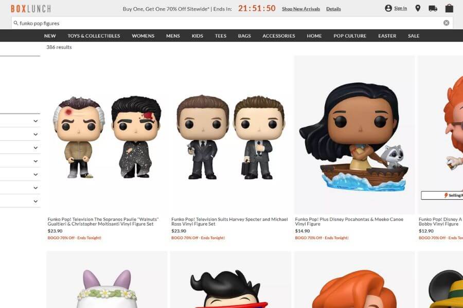 BoxLunch specializes in pop culture merchandise with a focus on giving back through charitable contributions. Their Funko Pop section includes figures from beloved franchises along with exclusive designs not found elsewhere.