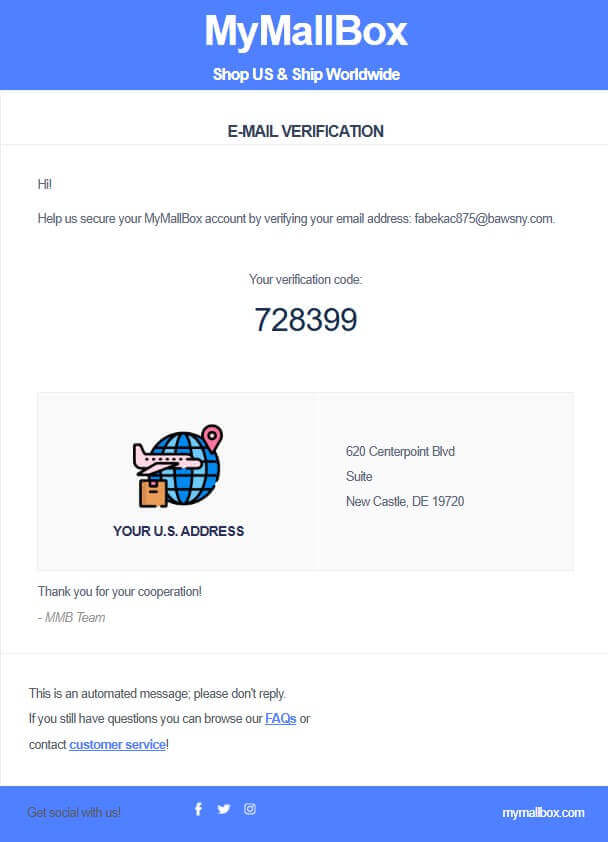 Upon successful completion of these steps, your account will be instantly activated, and your assigned U.S. address will be immediately available for use.